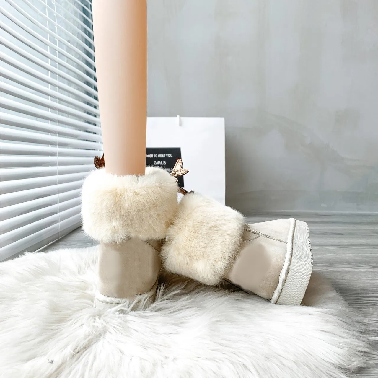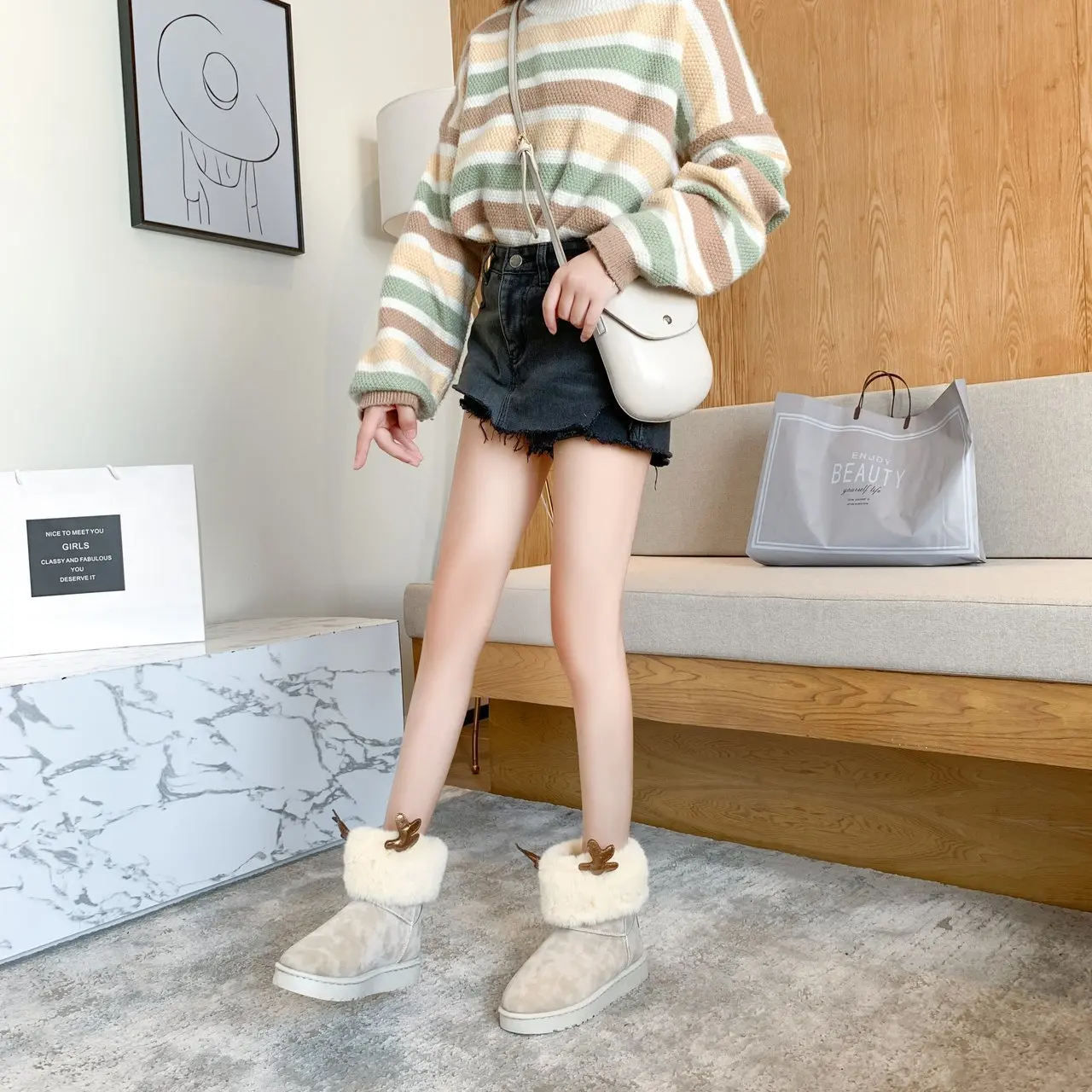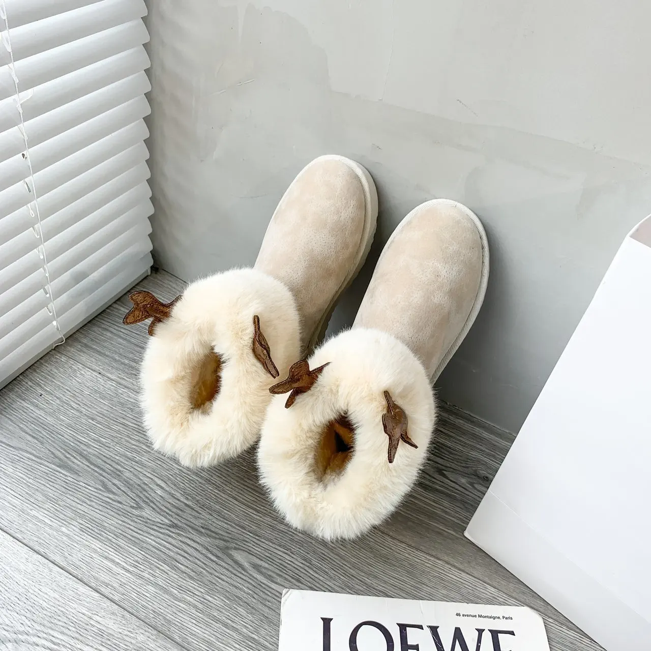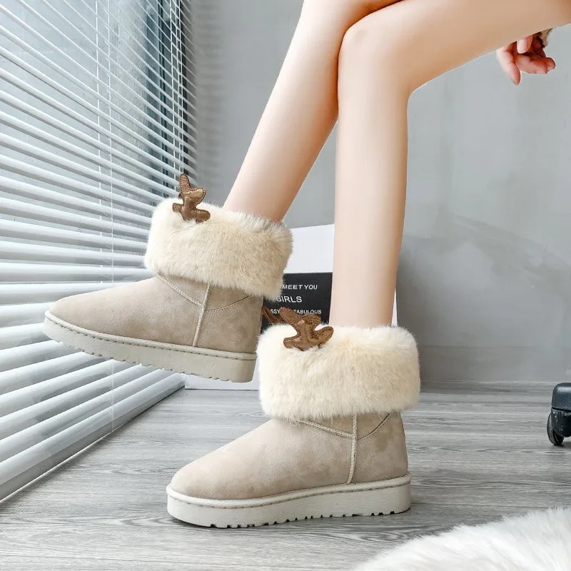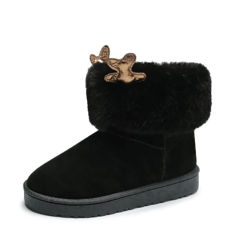 Новинка 2021, женские зимние ботинки, рождественский подарок для милой девушки, милый Рог лося с теплым ворсом, женская зимняя обувь, плюшевые ботильоны