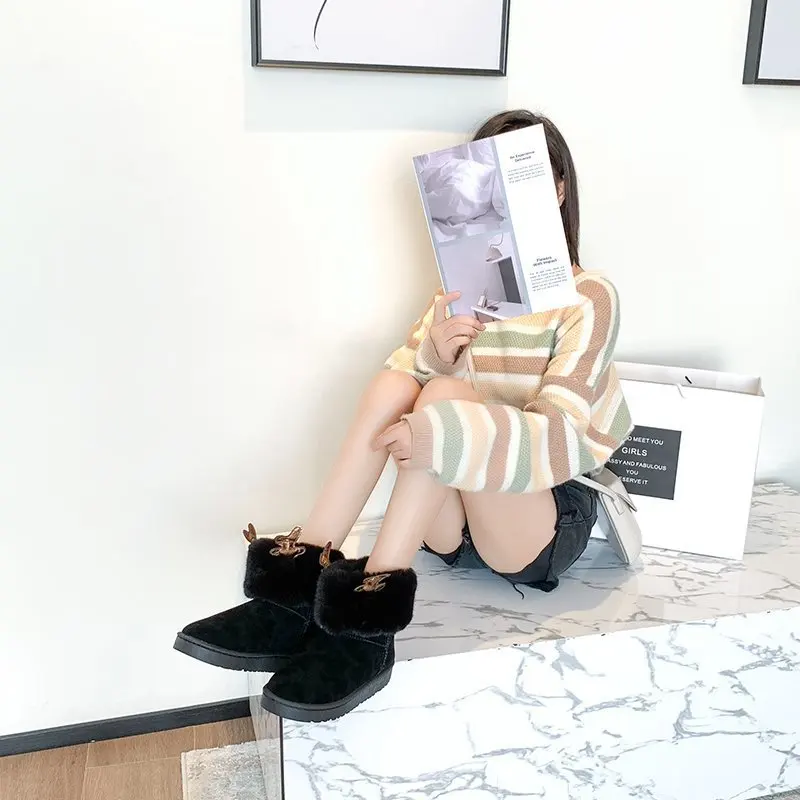 Ботинки женские зимние из 2021 хлопка, с утолщенной меховой подкладкой