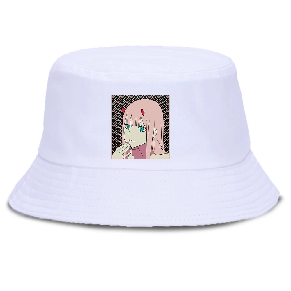 Шляпа для рыбака Zero Two Kawaii, с изображением девушки-дьявола, аниме, рок, Harajuku, лето мужская шляпа-Панама, хип-хоп, Пляжная, солнцезащитная, женская, унисекс