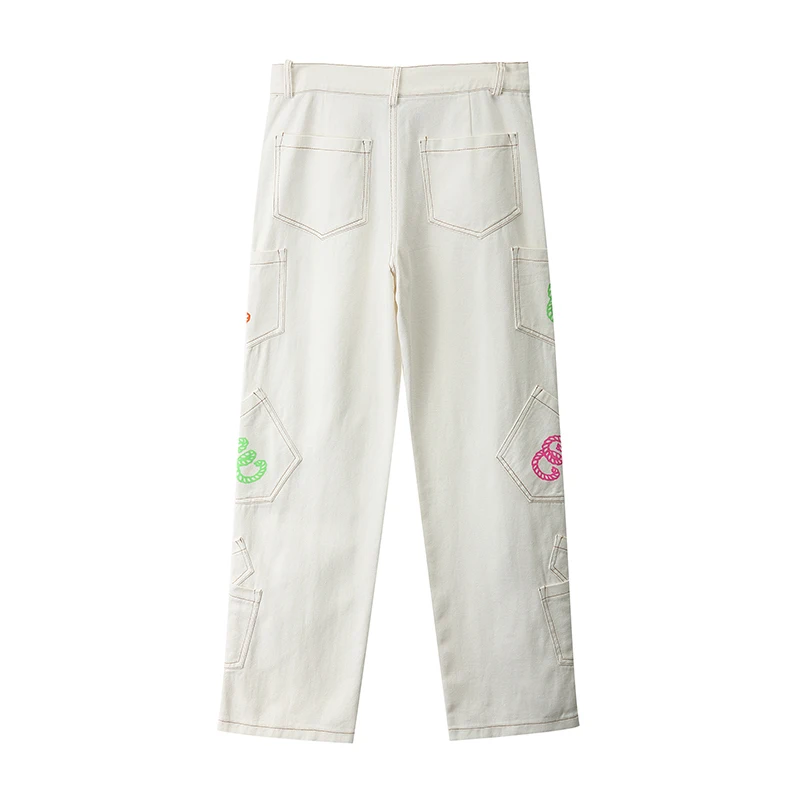 Прямые брюки в стиле ретро с карманами и принтом, повседневные джин...