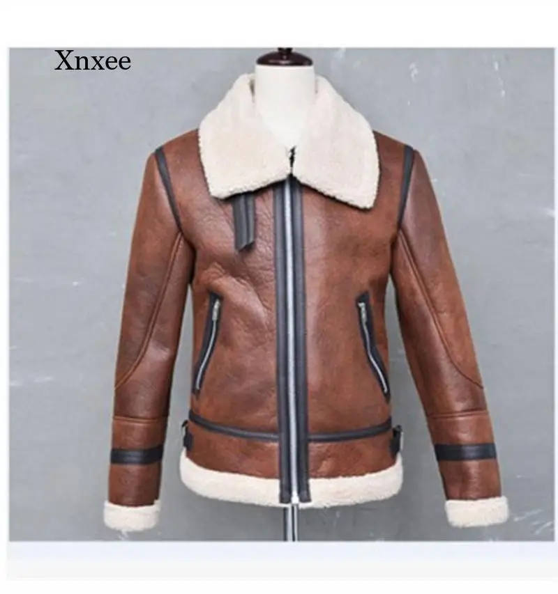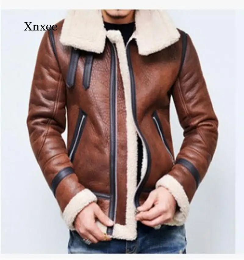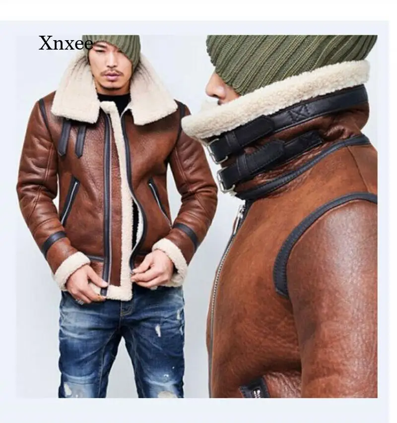 Зимняя Теплая мужская куртка из искусственной кожи с меховым ремнем с высоким воротником и подкладкой с длинным рукавом кожаная авиаторская зимняя куртка