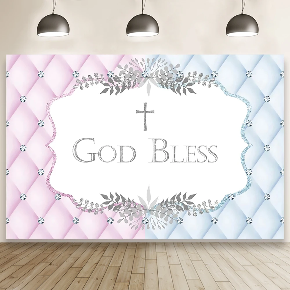 Фон для фотографирования новорожденных с изображением бога, благословления, ребенка, первого Святой причастия, крестивечерние ринки, Декор, синий, розовый клетчатый фон с крестом для дня рождения