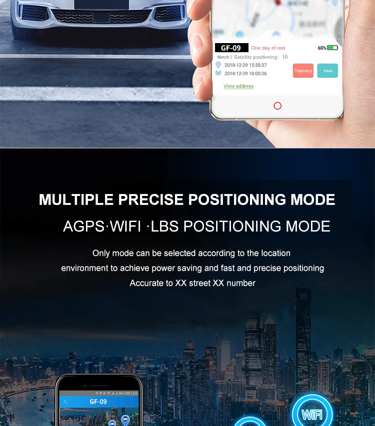 Прослушивание, запись голоса, голосовое управление обратным вызовом, отслеживание в реальном времени, ударная охранная сигнализация, SOS одна кнопка для помощи, историческая траектория.