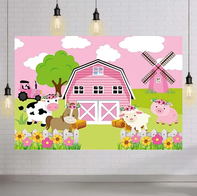 Фон для фотосъемки с изображением животных из мультфильма фермы розового сарая для девочек и детей на день рождения фон для фотосъемки украшения торта баннер на стол