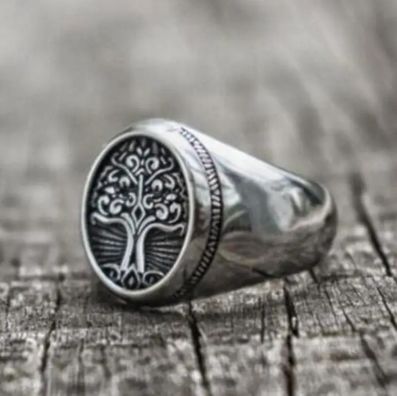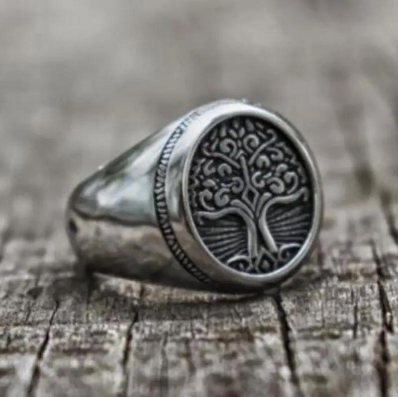 Мужское модное винтажное кольцо с гравировкой и большим деревом