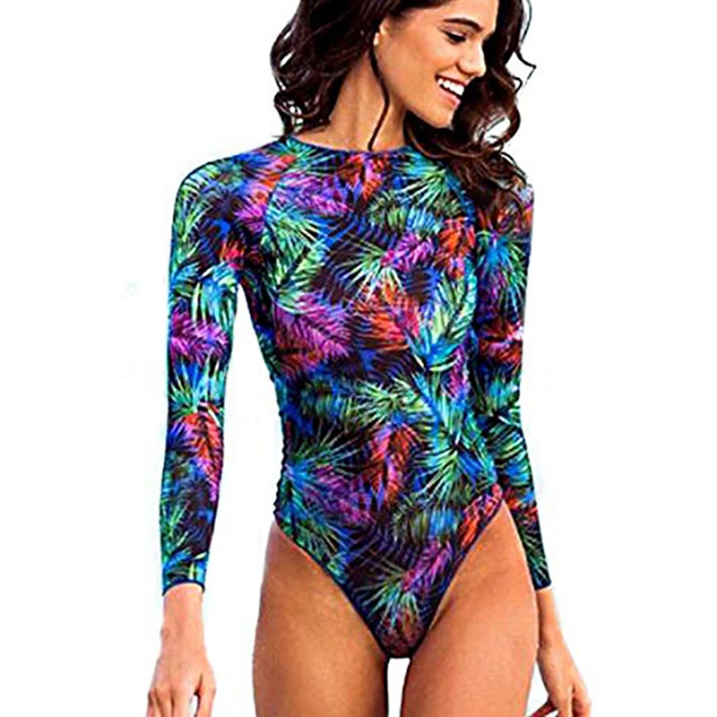 Купальник-бикини женский слитный с длинными рукавами и открытой спиной, пляжная одежда для серфинга, спортивный слитный купальник с УФ-защитой, купальник, 2021