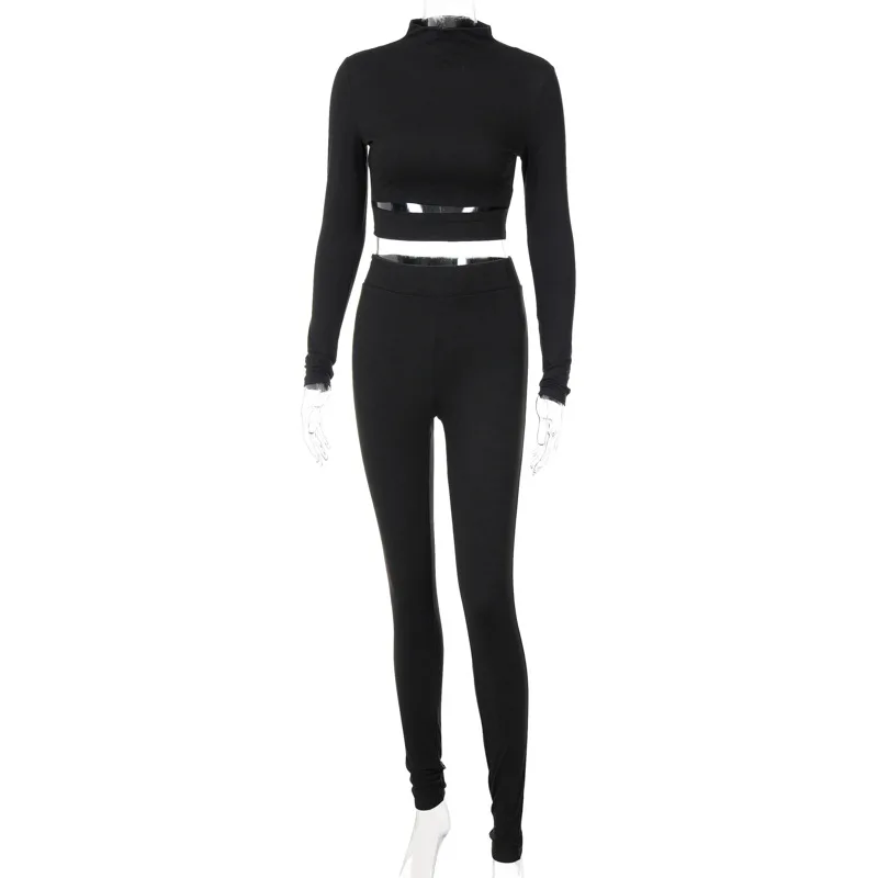Бесшовный однотонный комплект для йоги из двух предметов, осенняя новинка, женская спортивная одежда, уличная одежда, укороченный Топ с длинным рукавом и вырезами + леггинсы