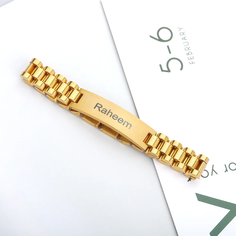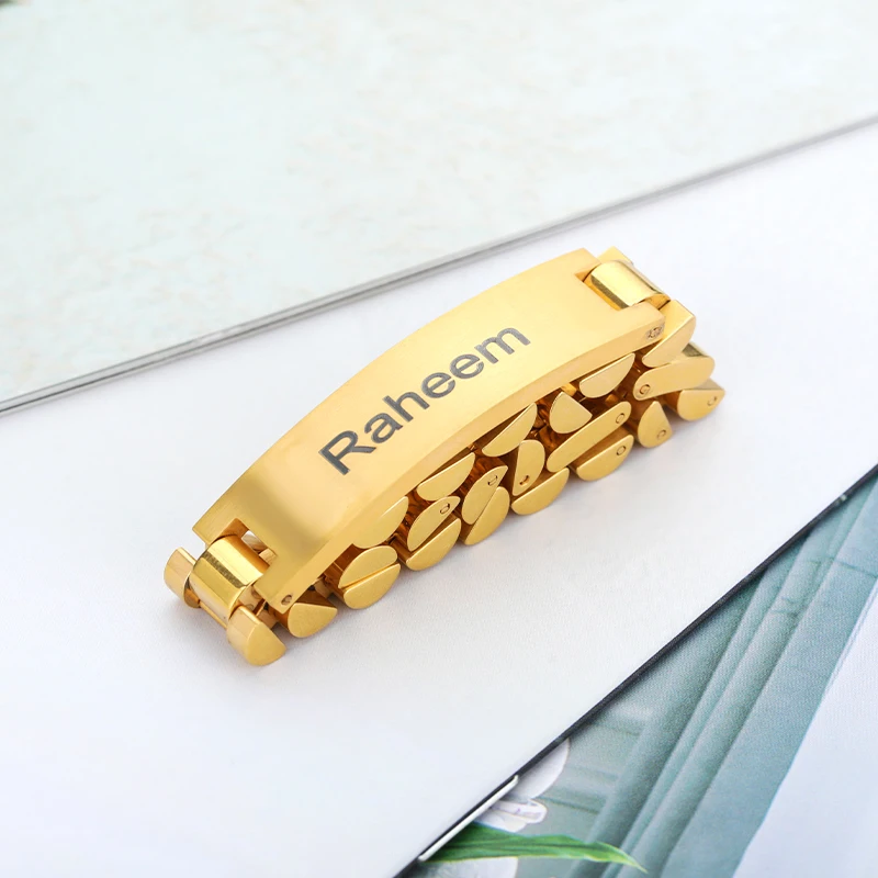 Браслеты на заказ для женщин и мужчин, золотые часы с именем ID из нержавеющей стали, браслет с лазерной гравировкой, персонализированные парные ювелирные изделия, подарок