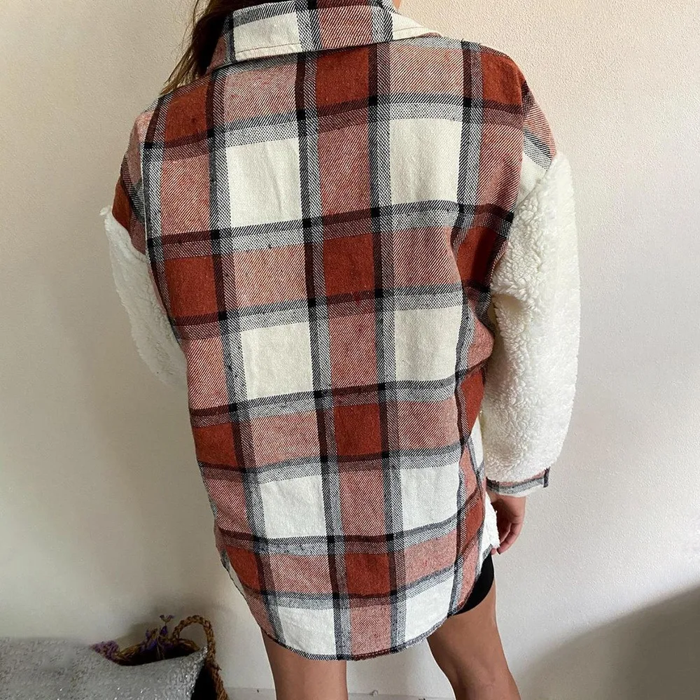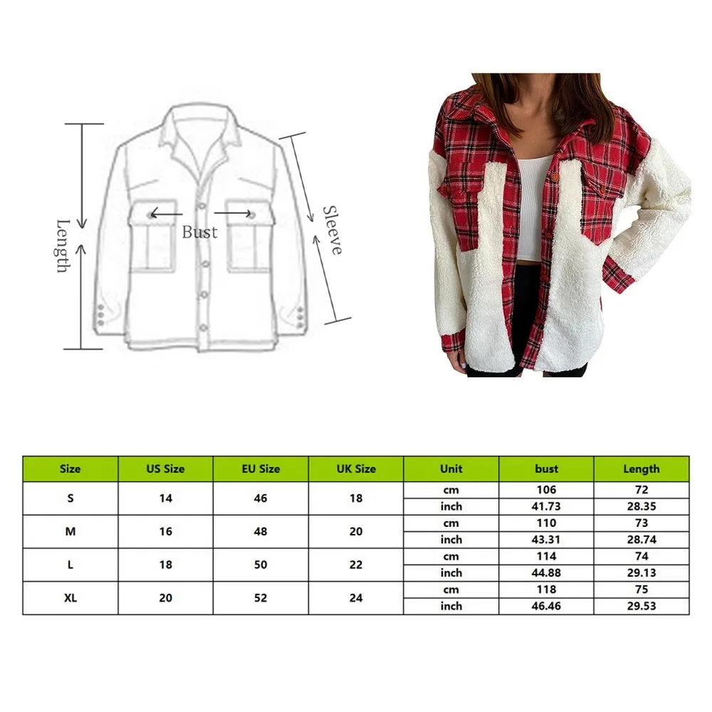 6Winter Warm Long Sleeve Stitching Plaid Pocket