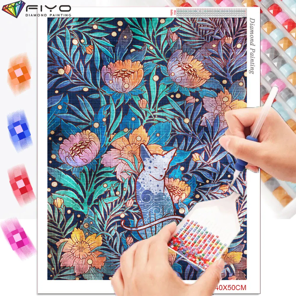 Алмазная 5D картина сделай сам с животными, кошкой, цветком, полная...