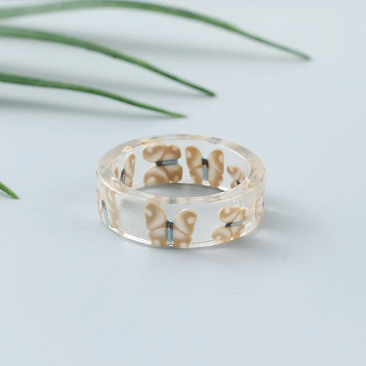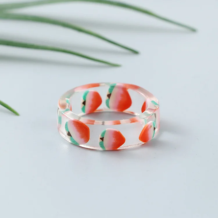 Кольцо из акриловой смолы женское, цветное прозрачное с фруктами, цветами, лягушкой, бабочкой, бантом, надписью, летнее Ювелирное Украшение для девушек и женщин