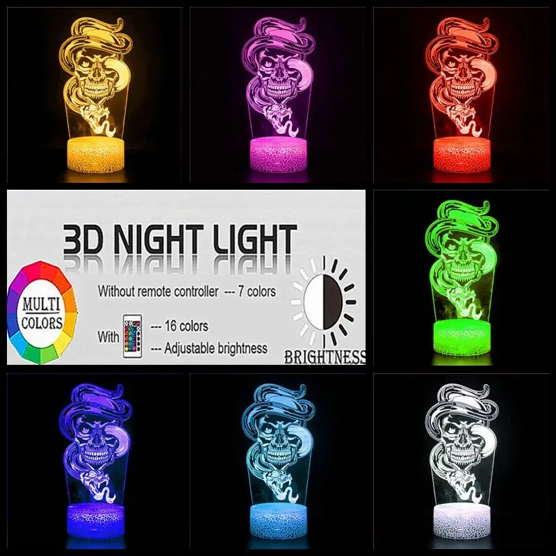 3D светодиодный цветной ночник, сменная лампа, светильник в виде черепа на Хэллоуин, акриловая игрушка с USB, голограмма, иллюзия, настольная лампа для детей, подарок, Прямая поставка