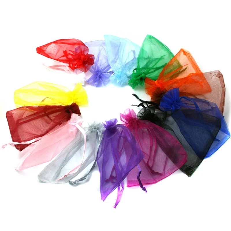 50 шт.лот 5*7 7*9 9*12 см Разноцветные мешочки из органзы на шнурке, сумки для ювелирных украшений, сумки для упаковки свадебных подарков, цвета