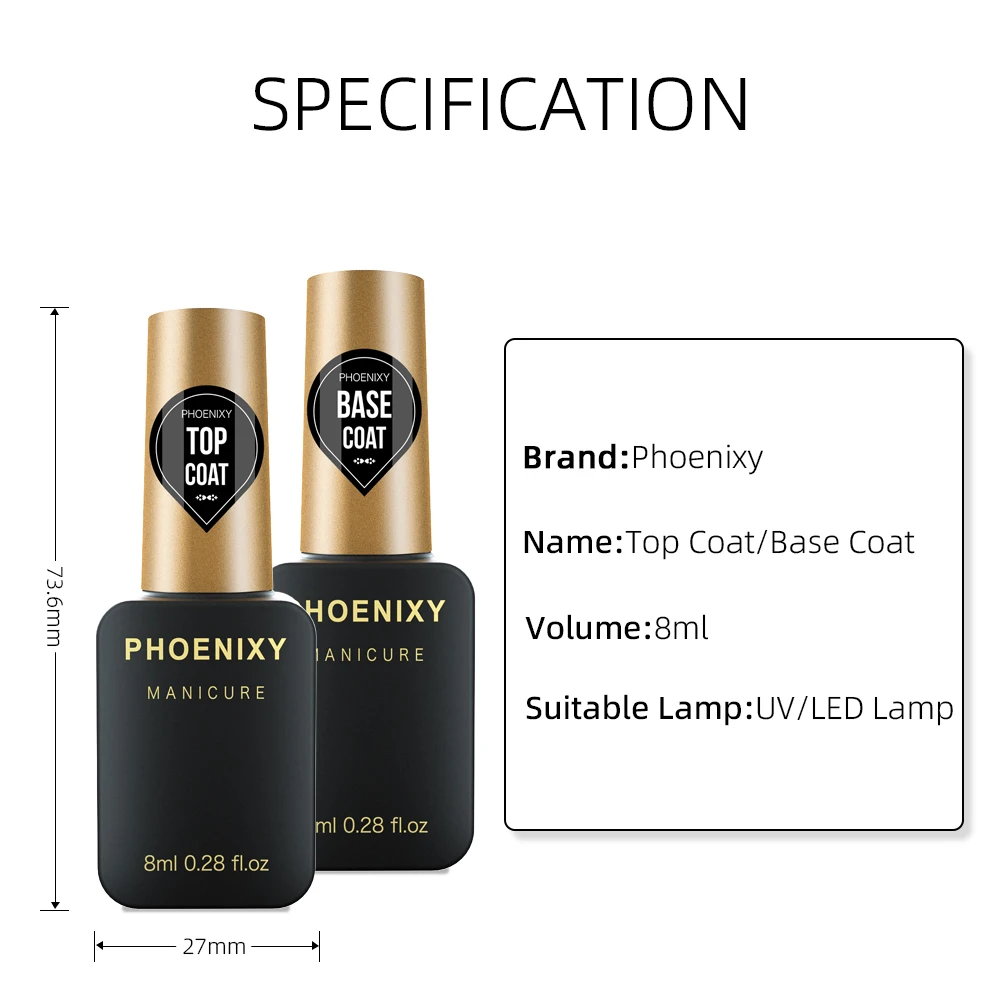 Phoenixy 8 мл Гель-лак для ногтей базовое и верхнее покрытие для ге...