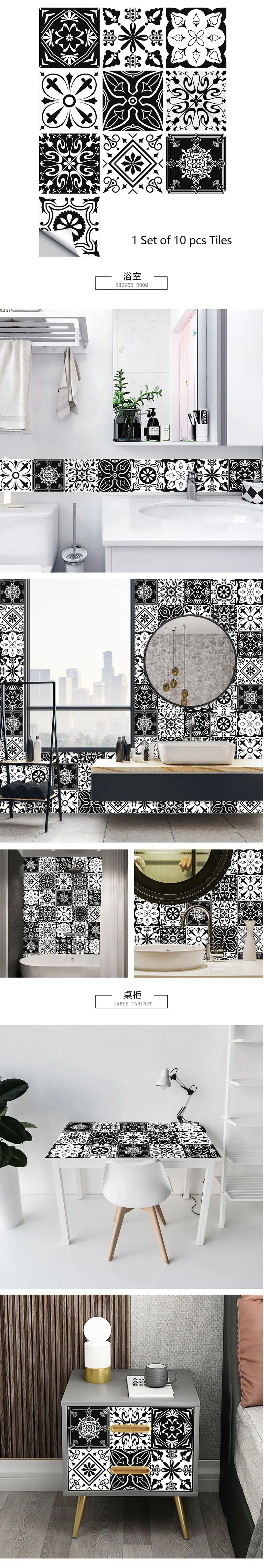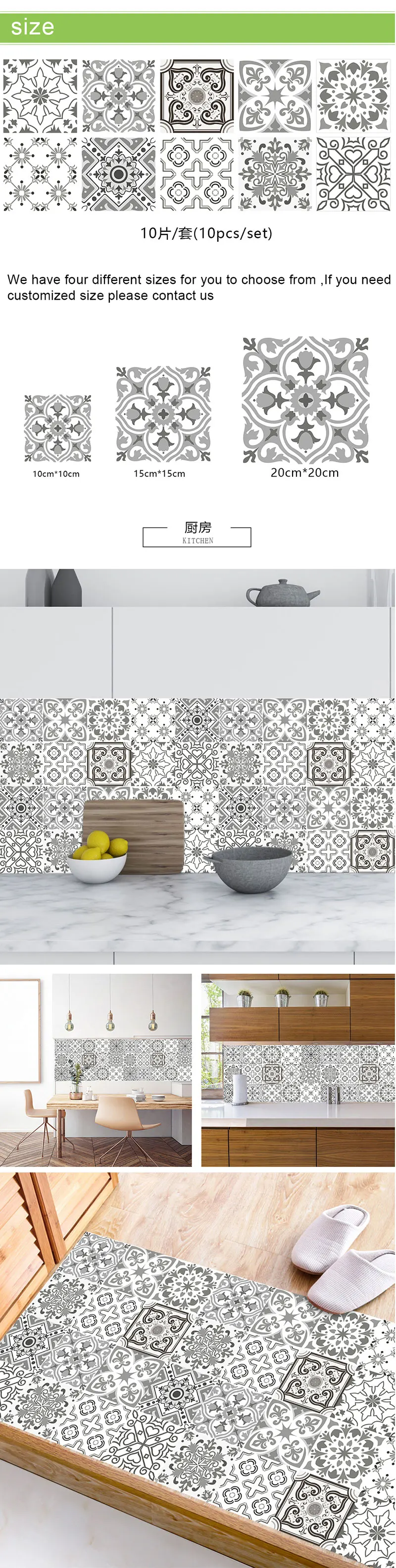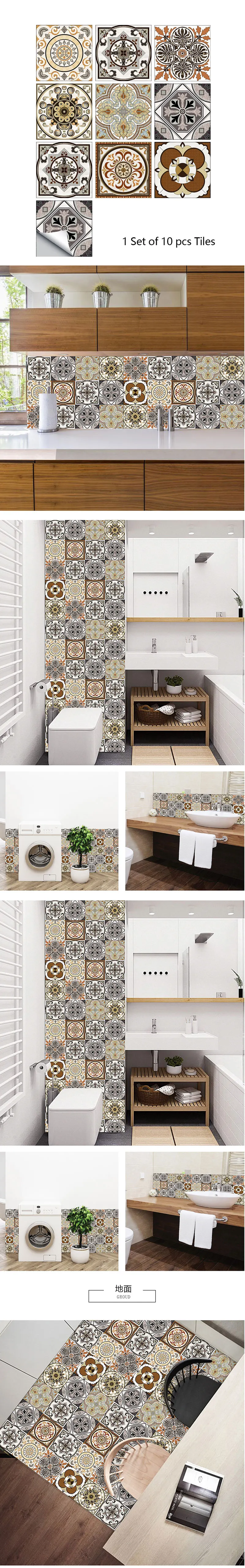 10 шт., водостойкие наклейки для плитки в стиле ретро