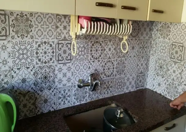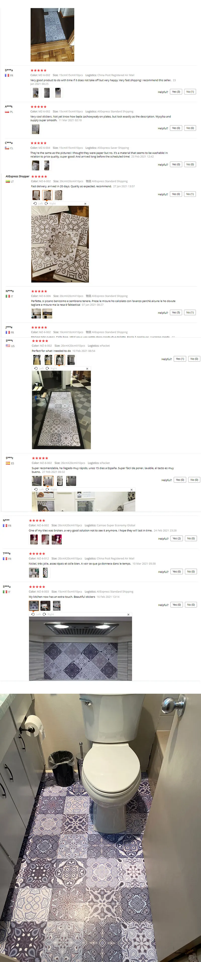 Для тонкой клейкой бумаги цена завышена. У нас не хватило «плиток» с таким рисунком, которые заказывали на амазоне. Они ламинированные, толщиной чуть тоньше пластиковой карты. Они блестят и на белом кафеле смотрятся, как плитка. А эти матовые, тонкие. Приклеили на короткие части кухонного «фартука», если не приглядываться, разница не сильно заметна. На первом фото плитка с амазона. На втором - верхняя с амазона, нижняя - этого продавца. Те отлично моются, эти посмотрим.