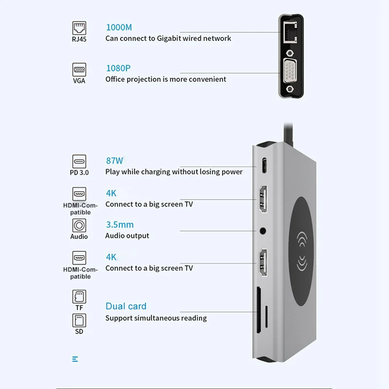 USB-концентратор usb-cHDMI, RJ45, TF, SD, зарядное устройство для MacBook Pro, разветвитель