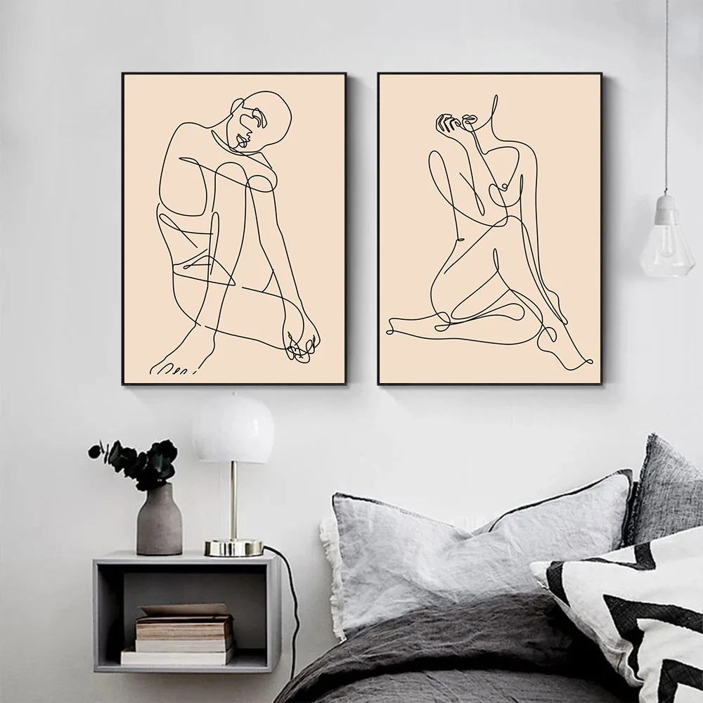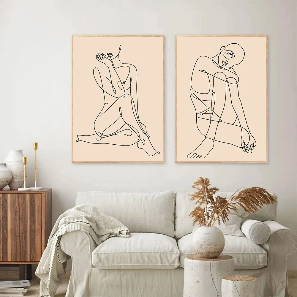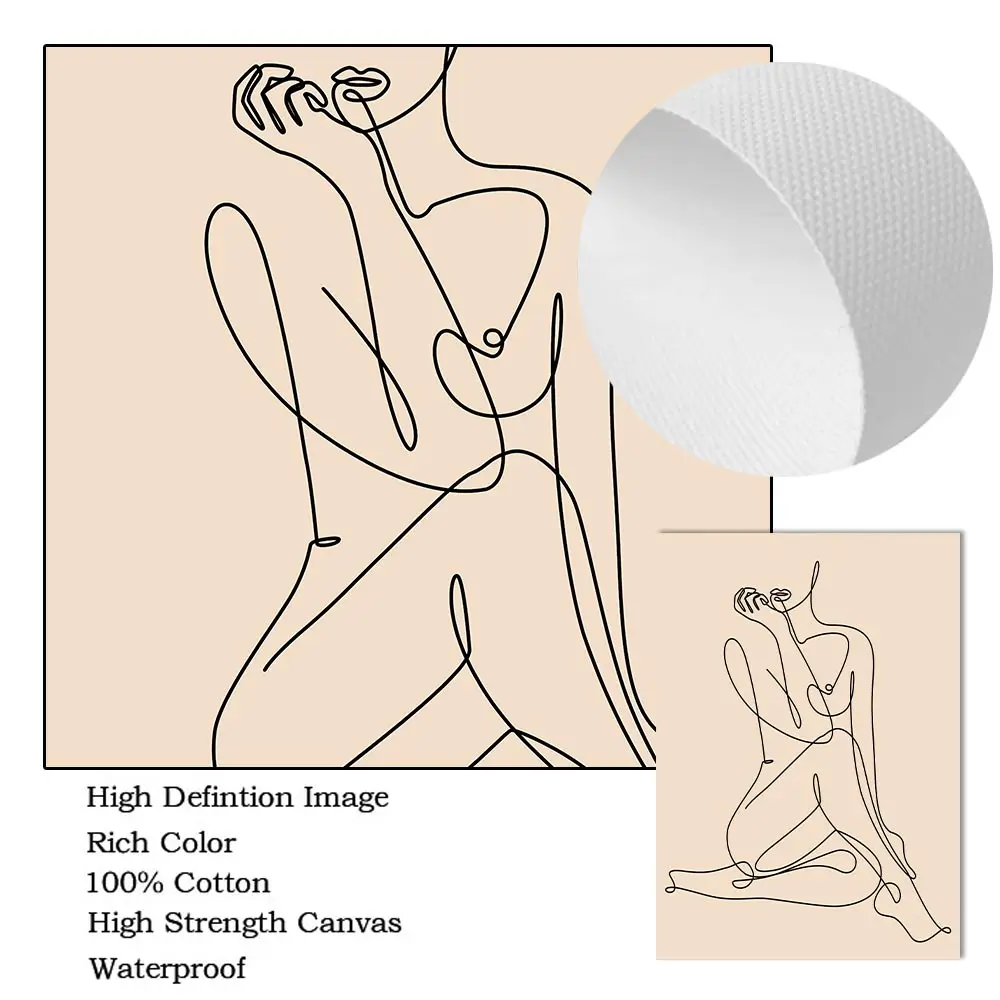 Абстрактная Женская Живопись боди-арт Обнаженная женщина тонкая линия рисунок плакат на холсте Йога Печать минималистские настенные картины Домашний декор