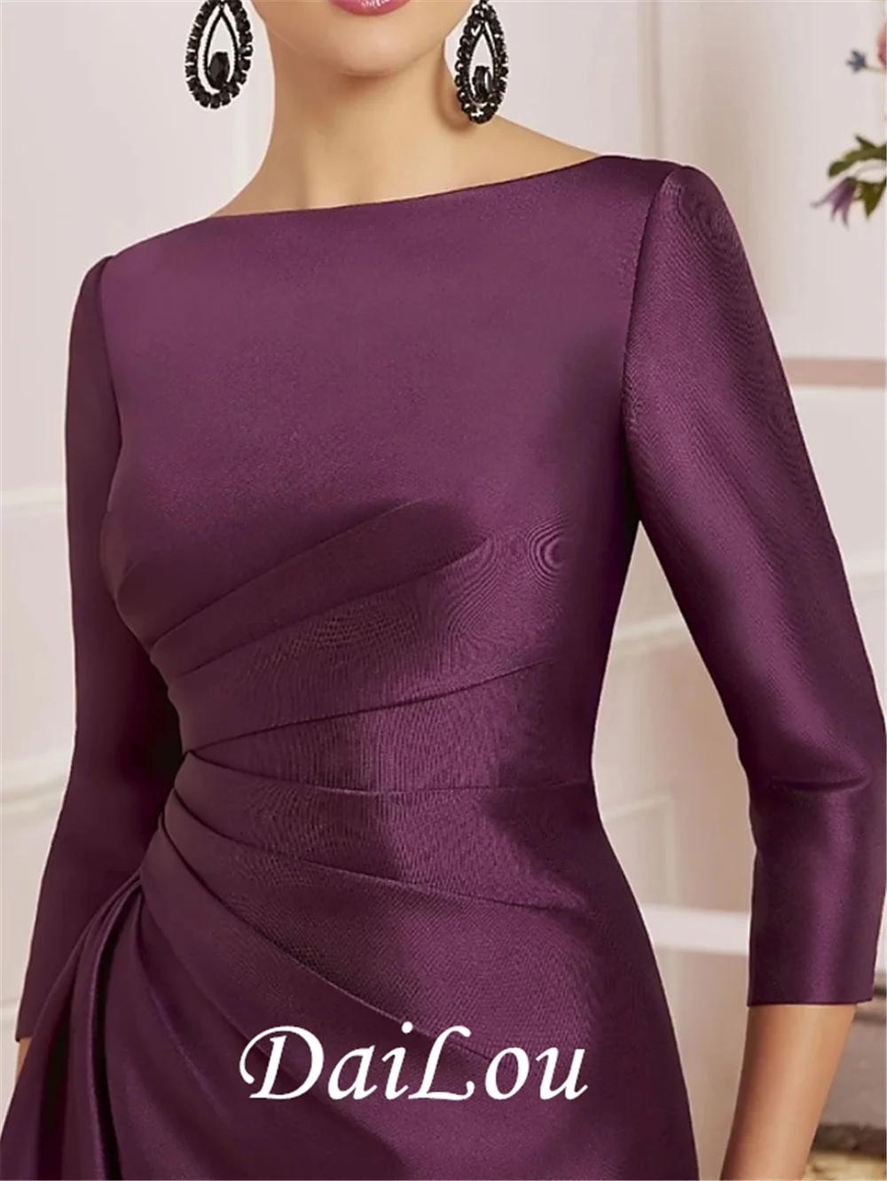 Платье-футляр для матери невесты, Элегантное Атласное Платье До Колена с открытыми плечами и рукавом 34 с рюшами, 2022