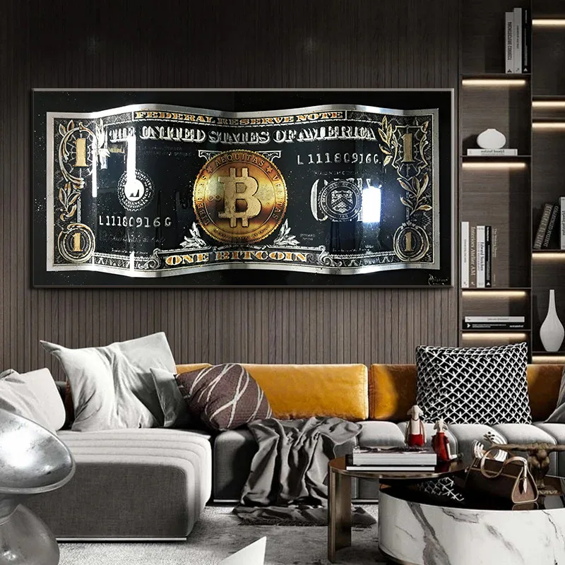 Вдохновляющие деньги Холст Картина один Биткойн доллар плакаты и пр...