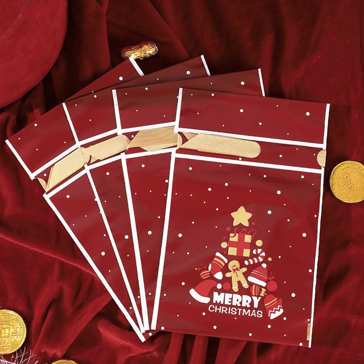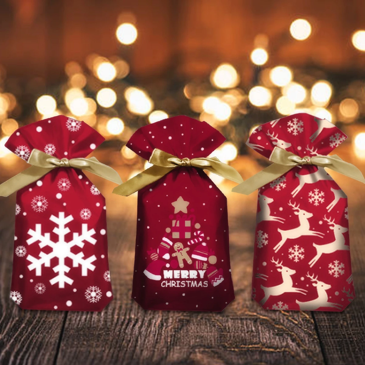 Мешочек для конфет с дедом морозом, Рождеством 2021, со снежинками, на шнурке, украшения для сумок, для дома, новый год 2022, подарок на Рождество, 10 шт.