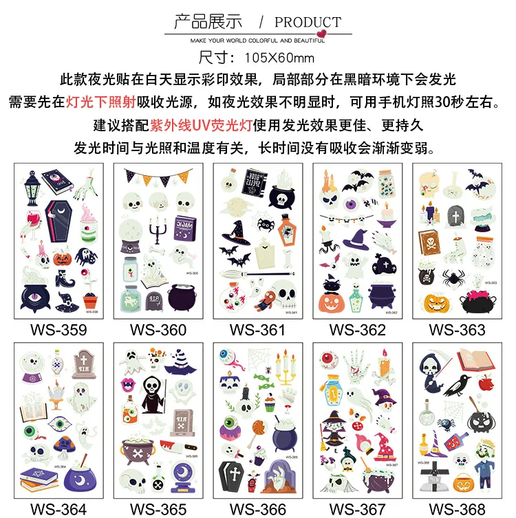 1 Лист наклейки на Хэллоуин флуоресцентные наклейки с татуировками ...
