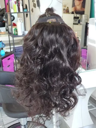 Волосы очень хорошие, плюс 4 пучка, которые я заказал у этой компании раньше, которые можно установить в шляпу для волос. Я был первым, кто сам устанавливал волосы, но это выглядело очень успешно.