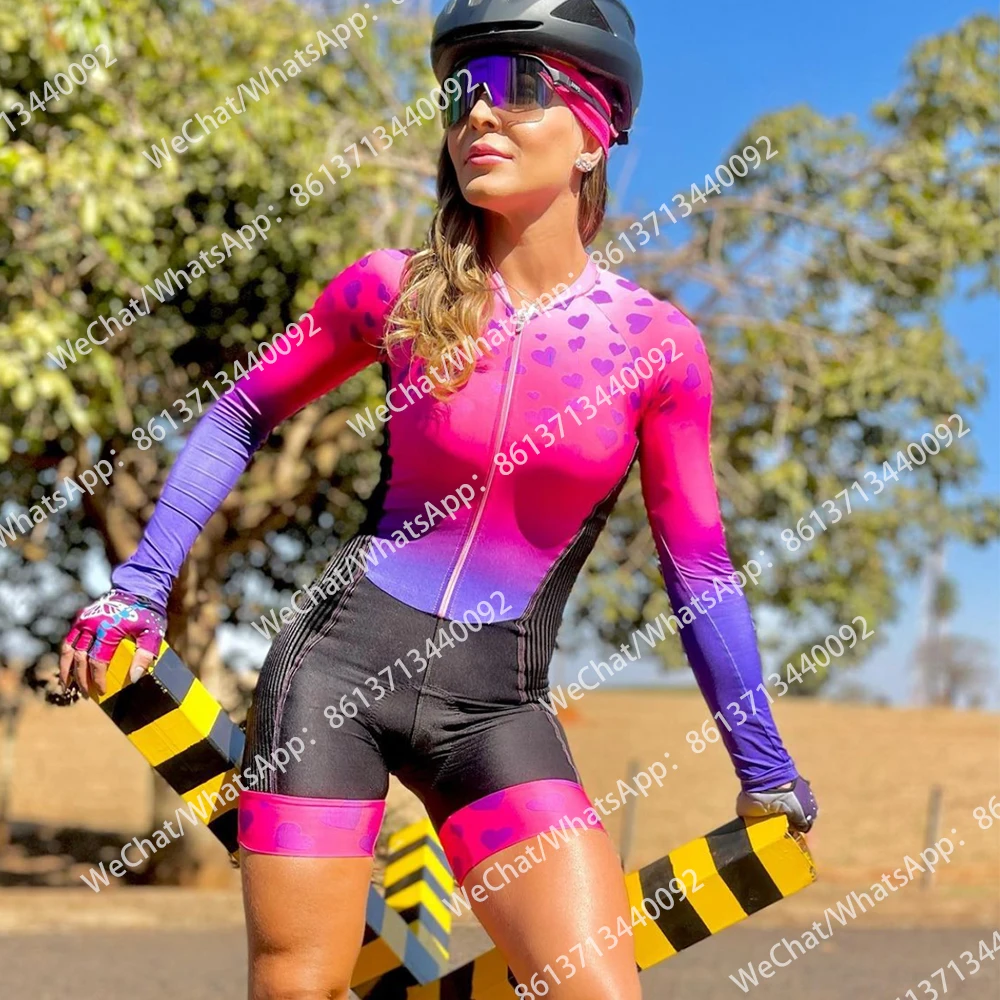 Костюм цельный женский для велоспорта, триатлоновый костюм с длинным рукавом, для фитнеса, на лето