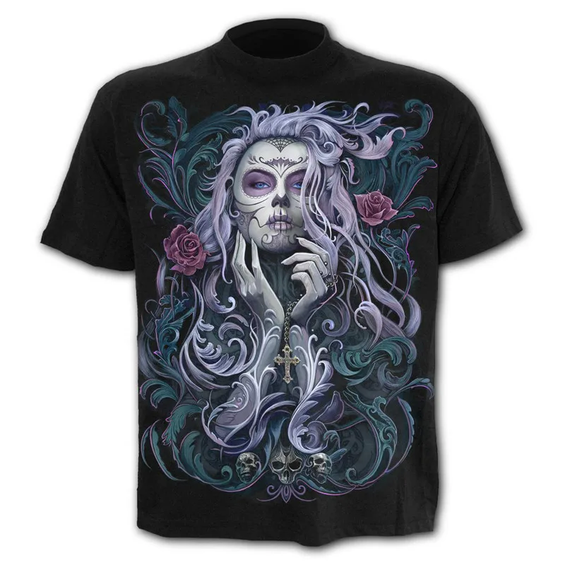 Жутким черепом Футболка мужская 3d в стиле панк-рок, рубашка в готи...