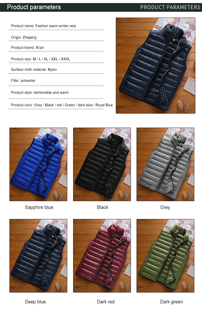 Мужская куртка FTTOY, жилет без рукавов, Зимняя мода, Мужской мягкий жилет, пальто, мужской плотный жилет с воротником-стойкой, одежда