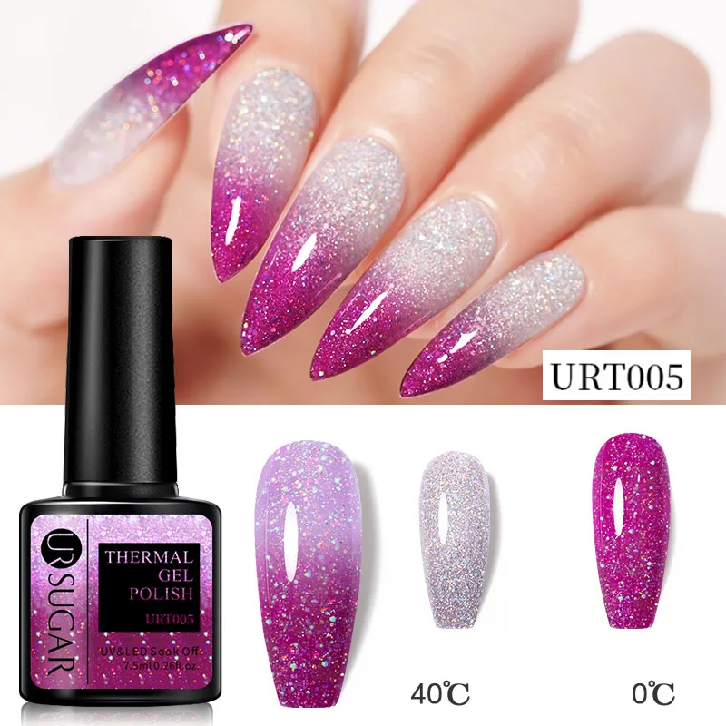Рождественские снежинки UR SUGAR, блестки, термальный гель, блеск, фиолетовый, меняющие цвет под воздействием температуры, стойкий светодиодный гель, удаляемый замачиванием