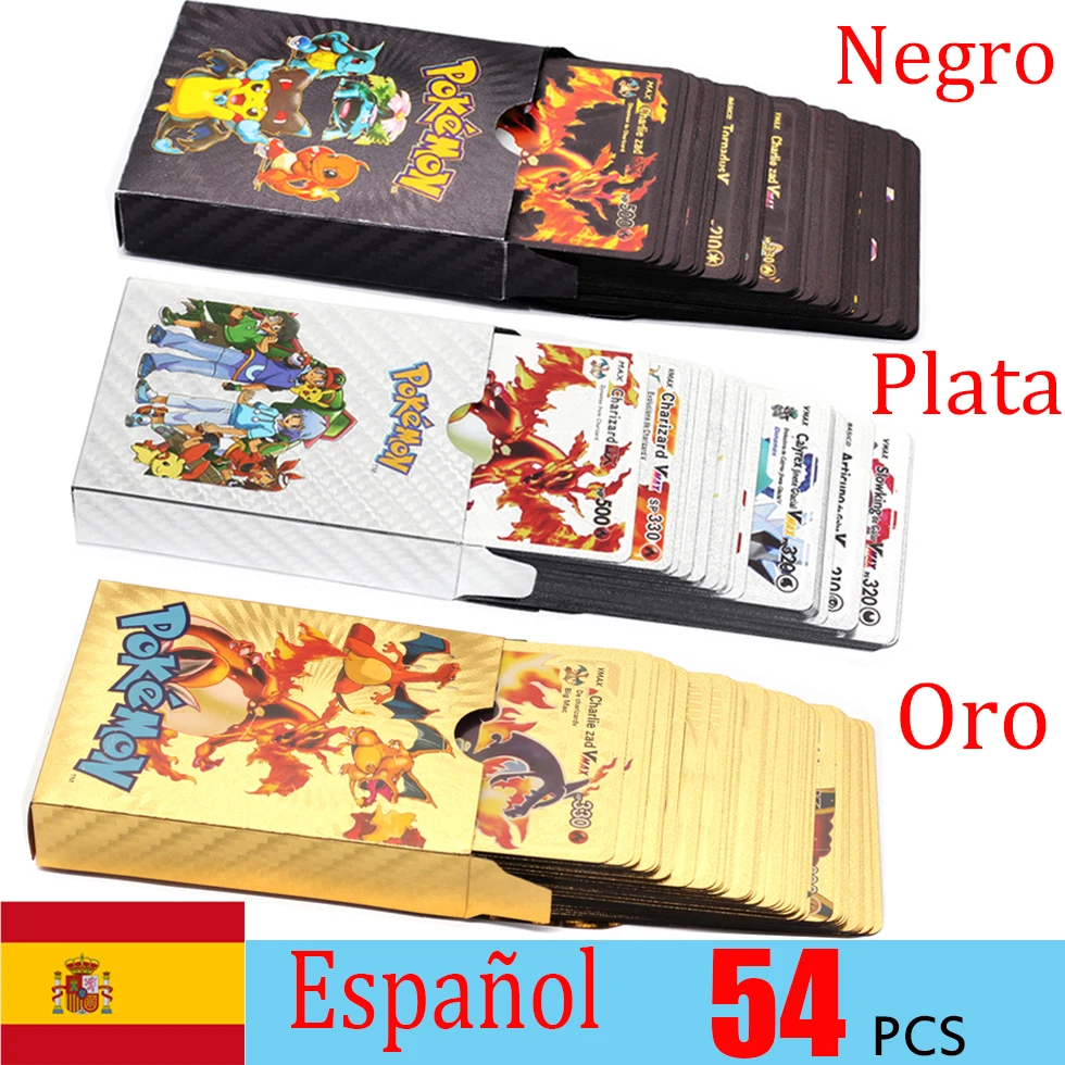 54100 шт. золотые карты Pokemon в испанской этикетке команда GX VMAX V тренер Energy карты золотистого цвета Game Castellano письма Pokemon Espaol