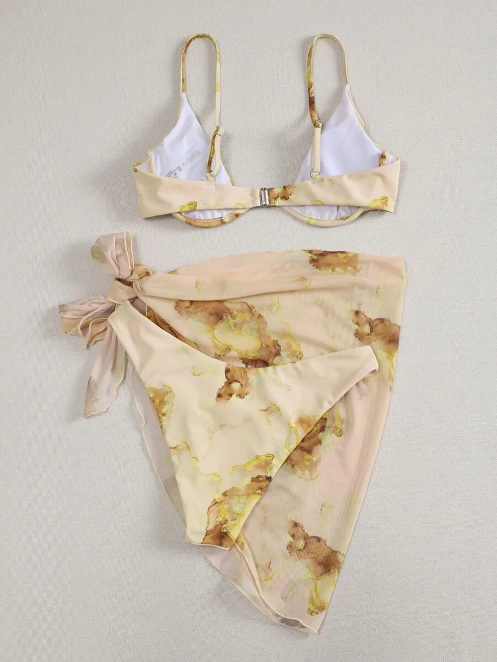 Новинка 2022, пикантный мраморный купальный костюм с принтом, спорт...
