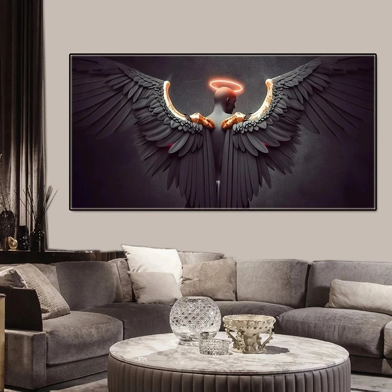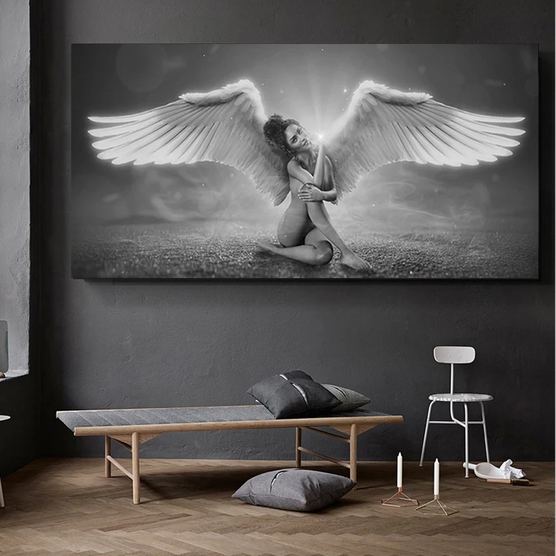 Скандинавский холст с ангелом и черными крыльями, обнаженные крылья, постеры для рисования, настенные художественные картины для гостиной, домашний декор icon star icon star icon star icon star icon star