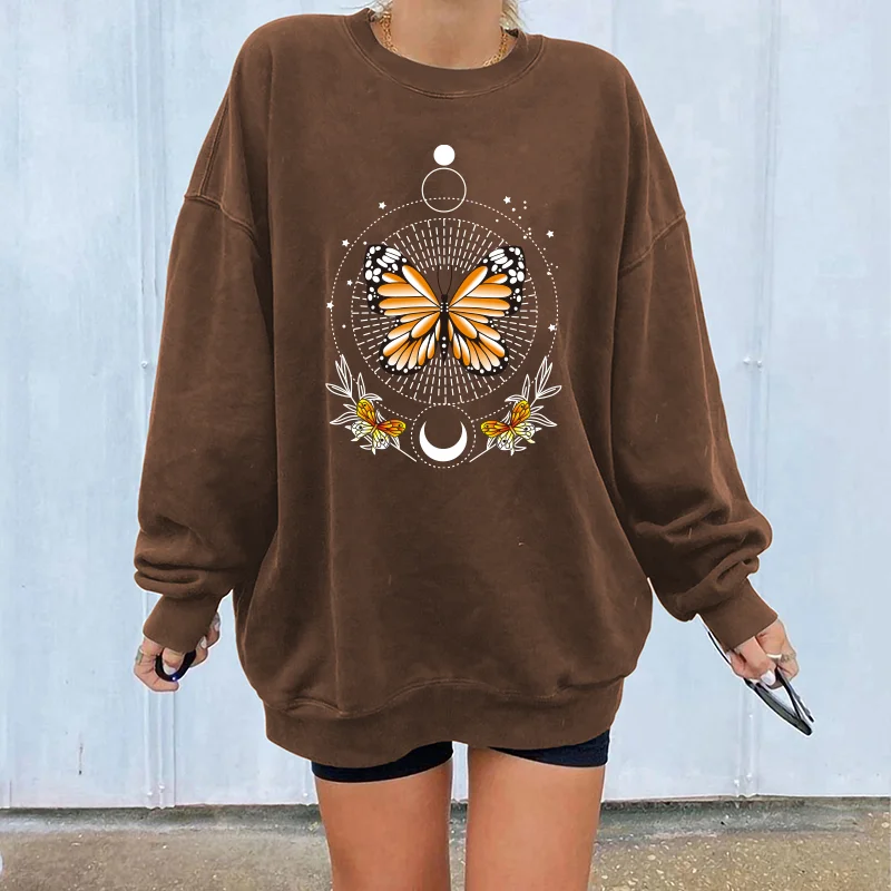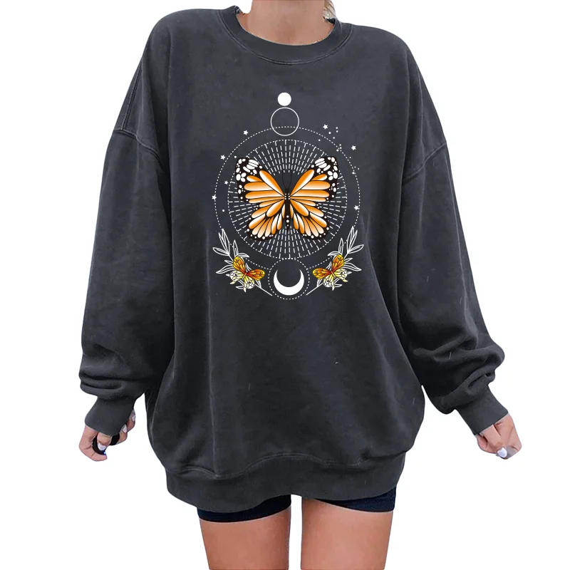 Женские свитшоты с принтом бабочек, спортивные пуловеры с длинным рукавом и спущенными плечами, свитшоты в винтажном стиле, 2021