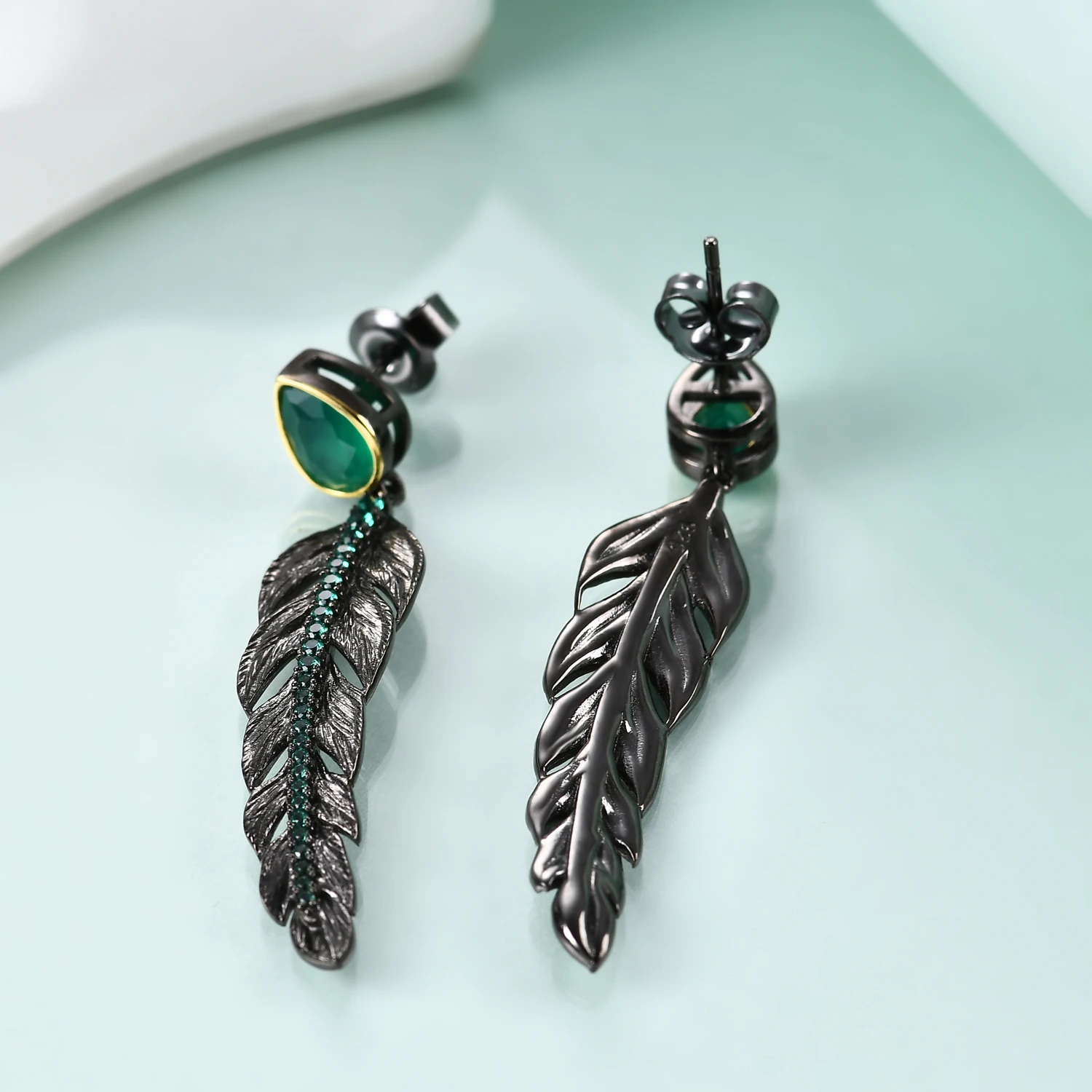 Серьги-гвоздики женские из серебра 925 пробы с перьями