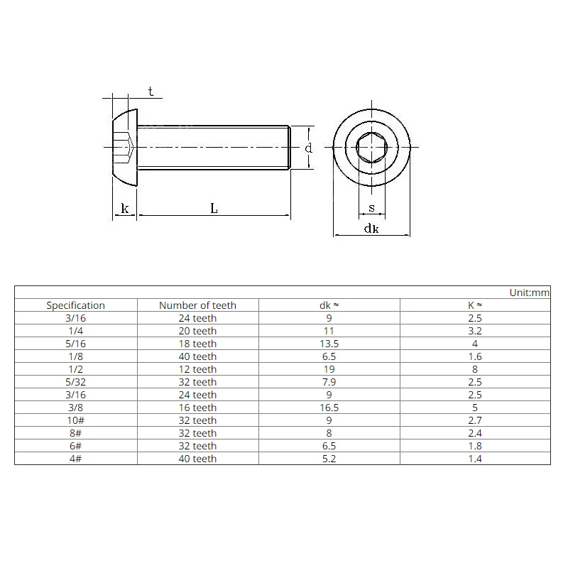 Материал: углеродистая сталь класса 10,9Стандарт: британский стандартРазмер изделия: "Диаметр-расстояние зуба" * "длина"Е. Г: 1/4-20*1/2: означает диаметр = 1/4 дюйма, расстояние зуба = 20 зубов, длина = 1/2 дюйма Примечание: