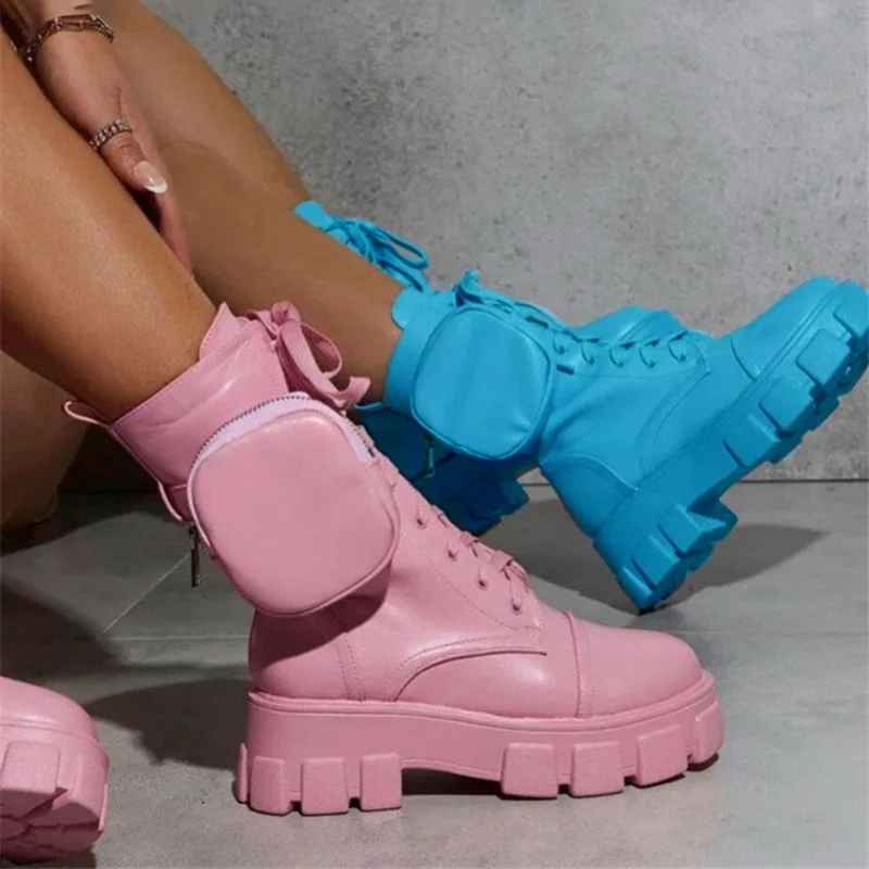 Женские ботинки на высокой платформе, повседневные ботинки на танке...