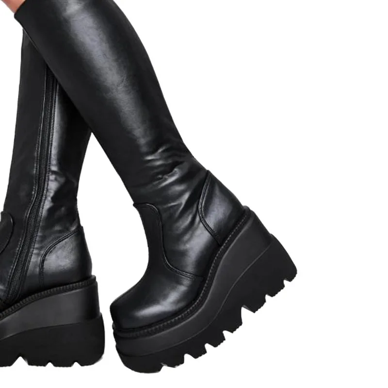 Женские ботинки на платформе, черные повседневные ботинки на высоком каблуке, на молнии, в готическом стиле, 2021