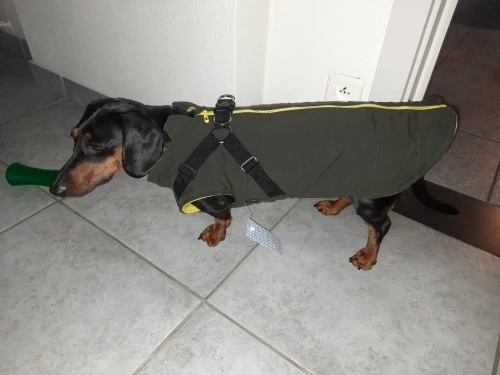 Очень хорошего качества, на собаку 7,5 кг немного большое, но это поправимо, затягивается ремнями . Рекомендую