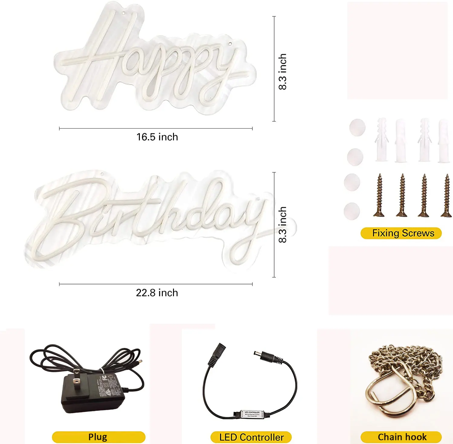 Описание:【Упаковка и доставка 】 экспресс-доставка около 10-35 дней, коммерческий Экспресс-Доставка 5-10 дней, 1 неоновый знак, 1 источник питания, 2x60 см металлическая цепь, 2 присоски,【Пластиковая основа Размер: "Happy" 42(L)x18(H)x1.5(W) см;"День рождения" 56(L)x20(H)x1.5(W) см; 5 мм прозрачное акриловое основание, 6x8 мм flex neon acr line.【 Цвет 】теплый белый/белый цвет света, устойчивый, с регулируемой яркостью.【 Светодиодный гибкий неона】 6x8 мм Ультра яркий светодиодный неоновый гибкий, изготовленный с суперфосфоресцирующей силиконовой трубкой, отличный неоновый эффект, видимый на солнце 100 метров,【 Питание: 12 В постоянного тока 2.5A адаптер питания, 2 м шнур питания с встроенным выключателем ВКЛ./ВЫКЛ., 100-240 В переменного тока 50/60 Гц вход, Всемирная вилка.