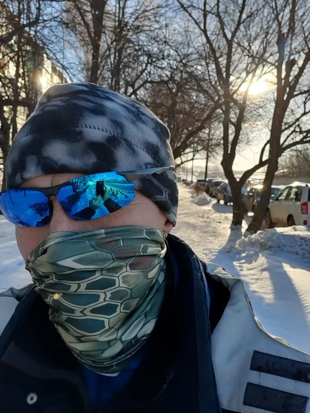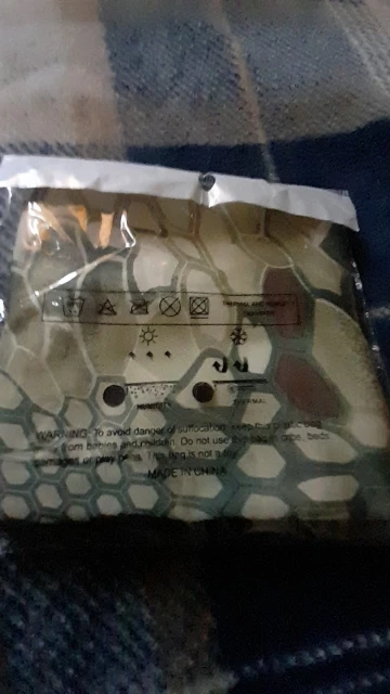 Доставка долгая из-за войны, так-то трек отслеживался и всё нормально шло. Бандана неплохая, хотя более тёмная, чем на фото. Труба длинная, края подвернуты. Единственный минус - изнанка белого цвета