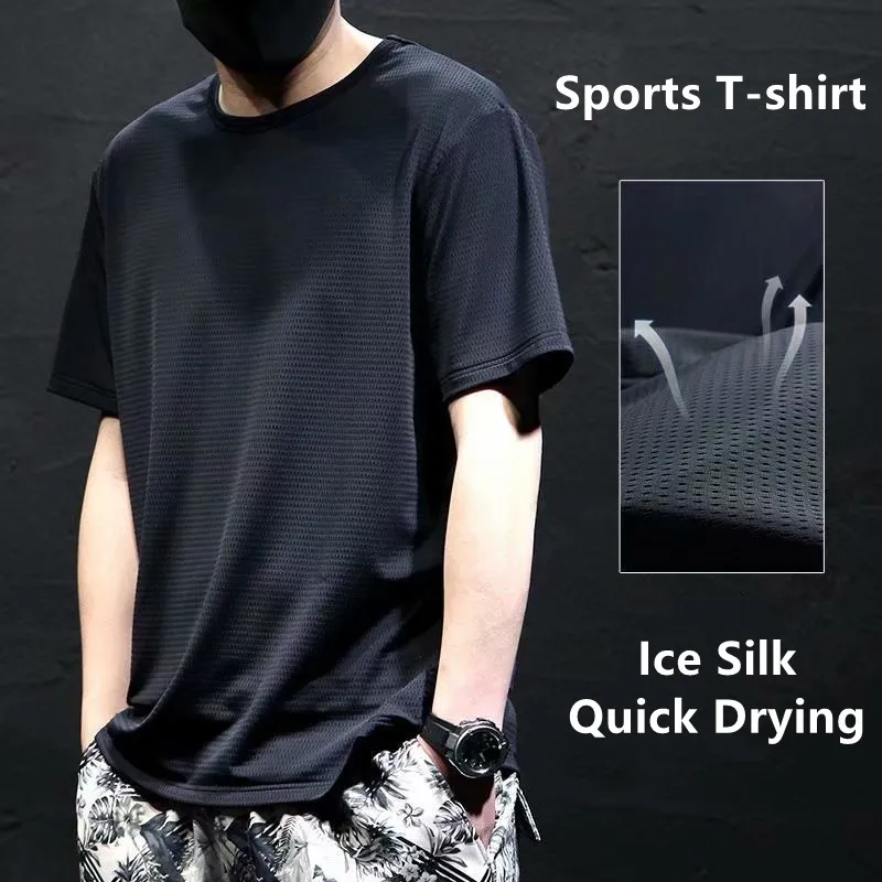 3 @ # ледяные Шелковые Тонкие крутые дышащие быстросохнущие тренировочные футболки для тренировок Новинка Мужская спортивная одежда спортивный необходимый топ с коротким рукавом