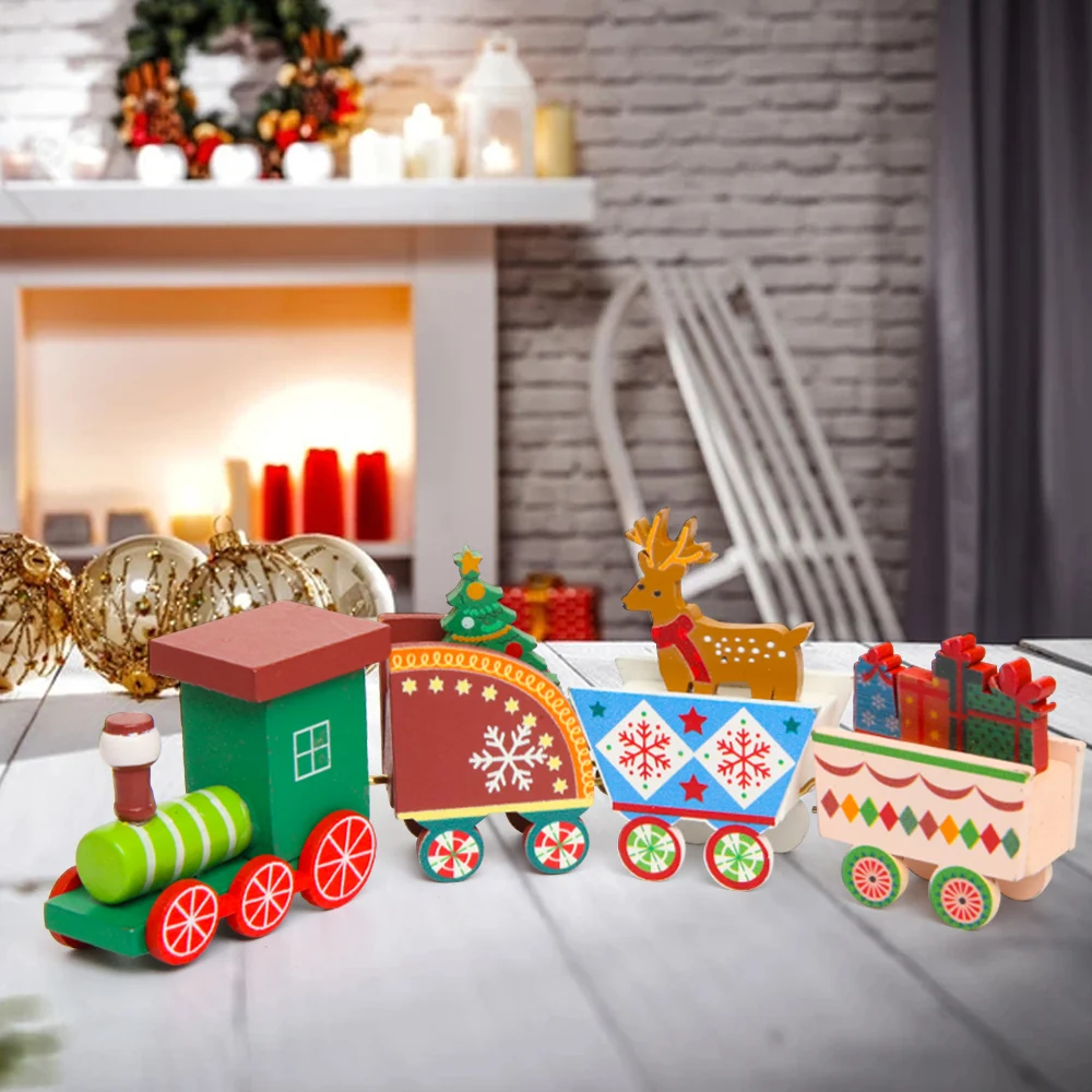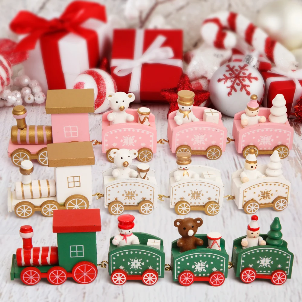 Деревянный маленький поезд, рождественские украшения для домашнего ...