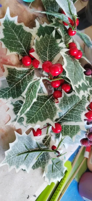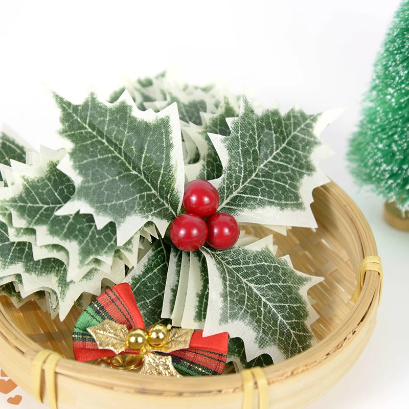 Искусственные ягоды падуба с листьями для рождественского венка, искусственные ягоды для украшения скрапбукинга, 56 см