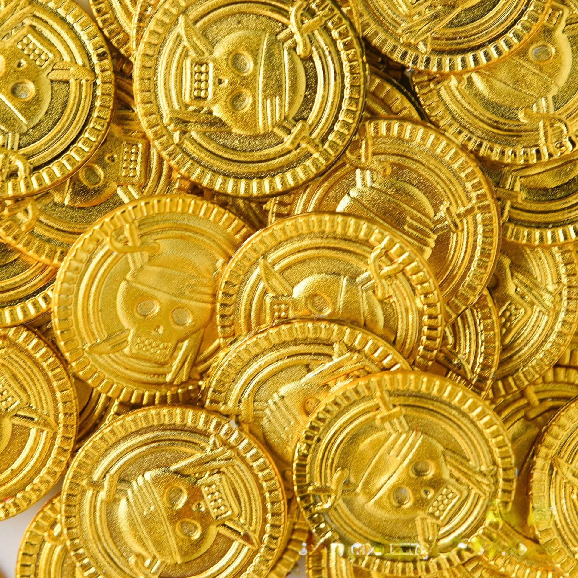 100 шт., золотые монеты пиратов, пластиковые сокровища в виде монет...