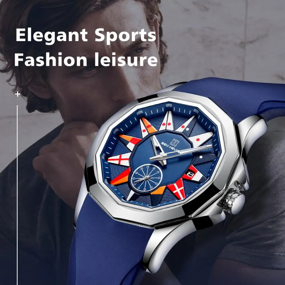 Часы наручные мужские кварцевые, креативные Спортивные Мягкие Водонепроницаемые с морским флагом, хронографом, календарем, силиконовым ремешком