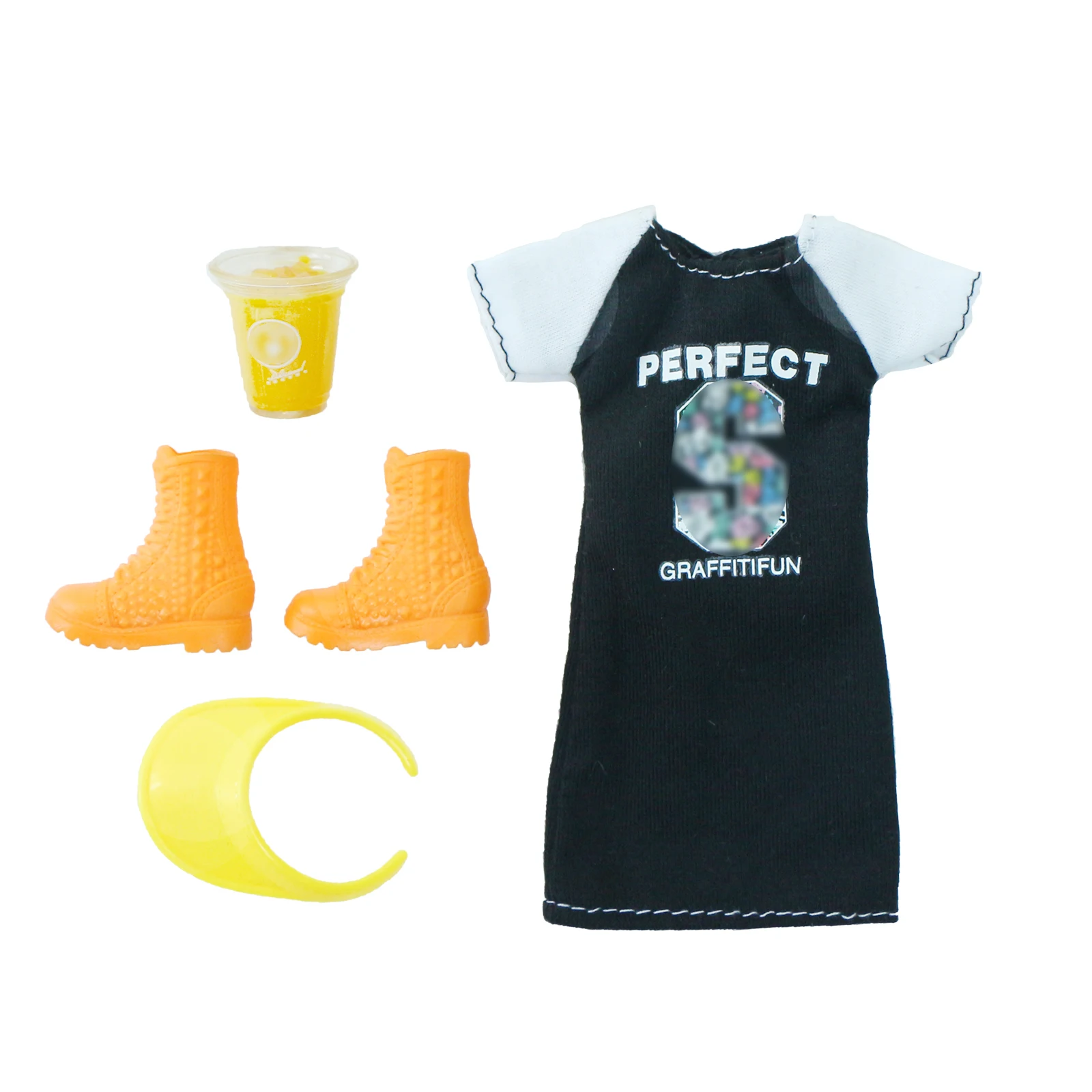 1 комплект, наряд для куклы BJDBUS, черная футболка, платье, чашка для напитков, шапочка, оранжевая обувь, Одежда для куклы Барби, детские игрушки для одевания
