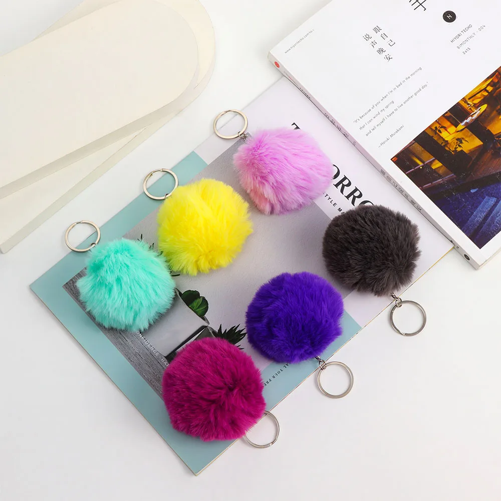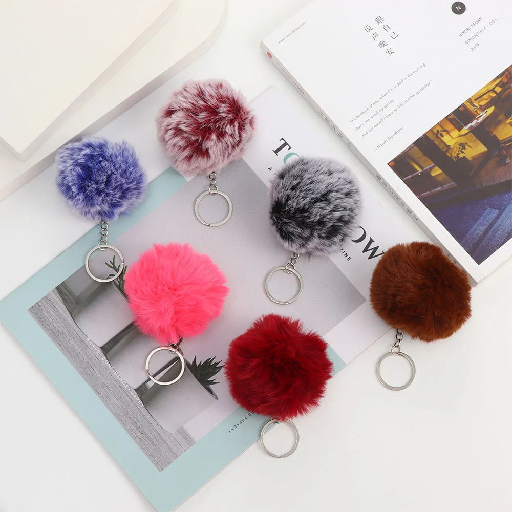 Брелок для ключей с помпоном из искусственного меха кролика, 20 цветов