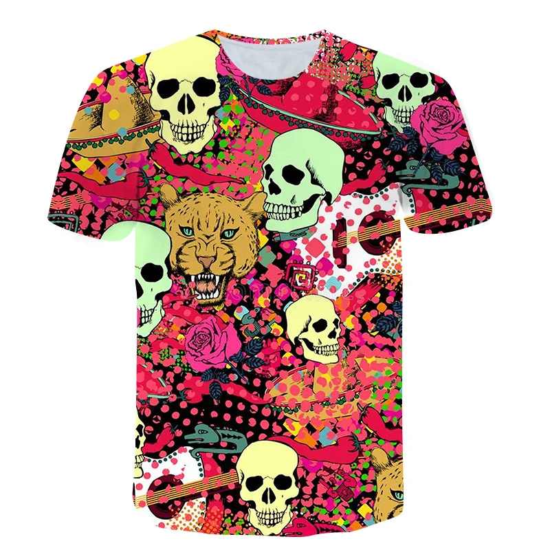 Мужская футболка с принтом черепа, с коротким рукавом, 3D принт, дышащая Повседневная футболка, 2021